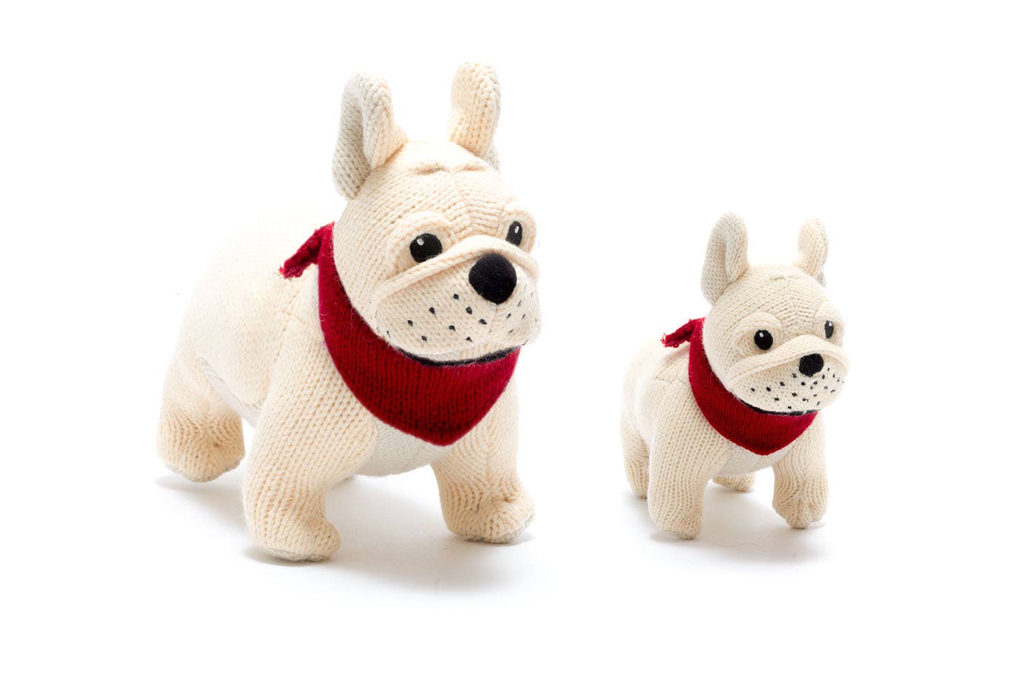 New knitted bulldog plush toy to compliment our bulldog rattle and our dachshund toys and rattles. Tactile and robust knitted fabric, perfect to play with or to cuddle.