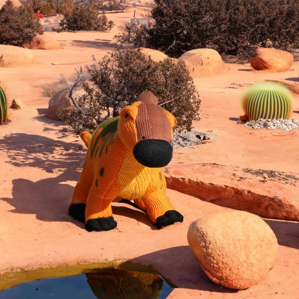 Knitted Parasaurolophus Dinosaur Plush Toy Orange