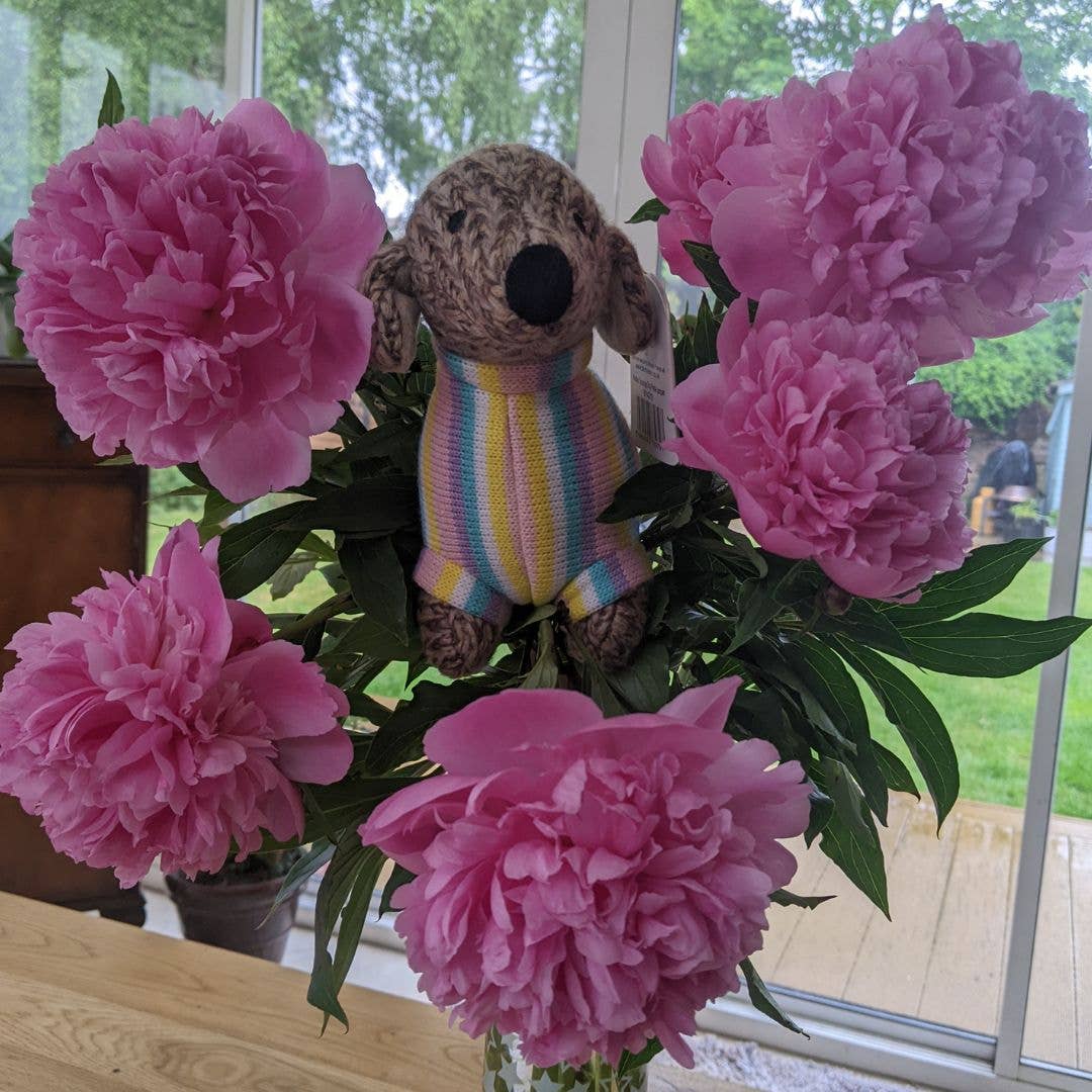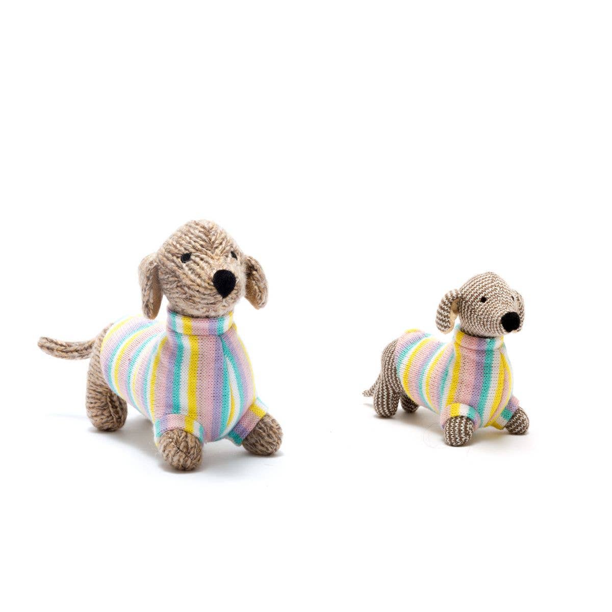 Our popular knitted sausage dog toy now has a companion with a pretty pastel jumper.