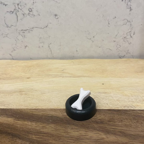 Wooden Pet Dog Play Set by Tender Leaf Toys A wooden dolls house pet accessory toy for kids that includes a charming basset hound dog with a bowl and a bone.