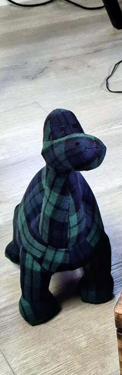 Our latest diplodocus dinosaur soft toy - a tartan dinosaur, perfect for dinosaur mad kids. Available in three sizes our diplodocus is one of our most popular dinosaur toys.
